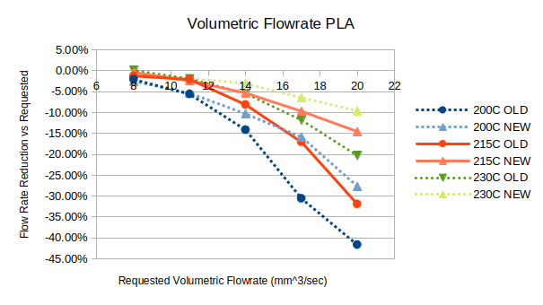 This page documents the change in achievable volumetric flowrate (VFR) caused by upgrading a Longer LK5 Pro to a knockoff all-metal hotend+CHT nozzle from aliexpress. Using the CNCKitchen/iFallUpHill benchmark tool at https://hotend-flow-tester.netlify.app/, both the old and new hotends were evaluated for volumetric flow rate.